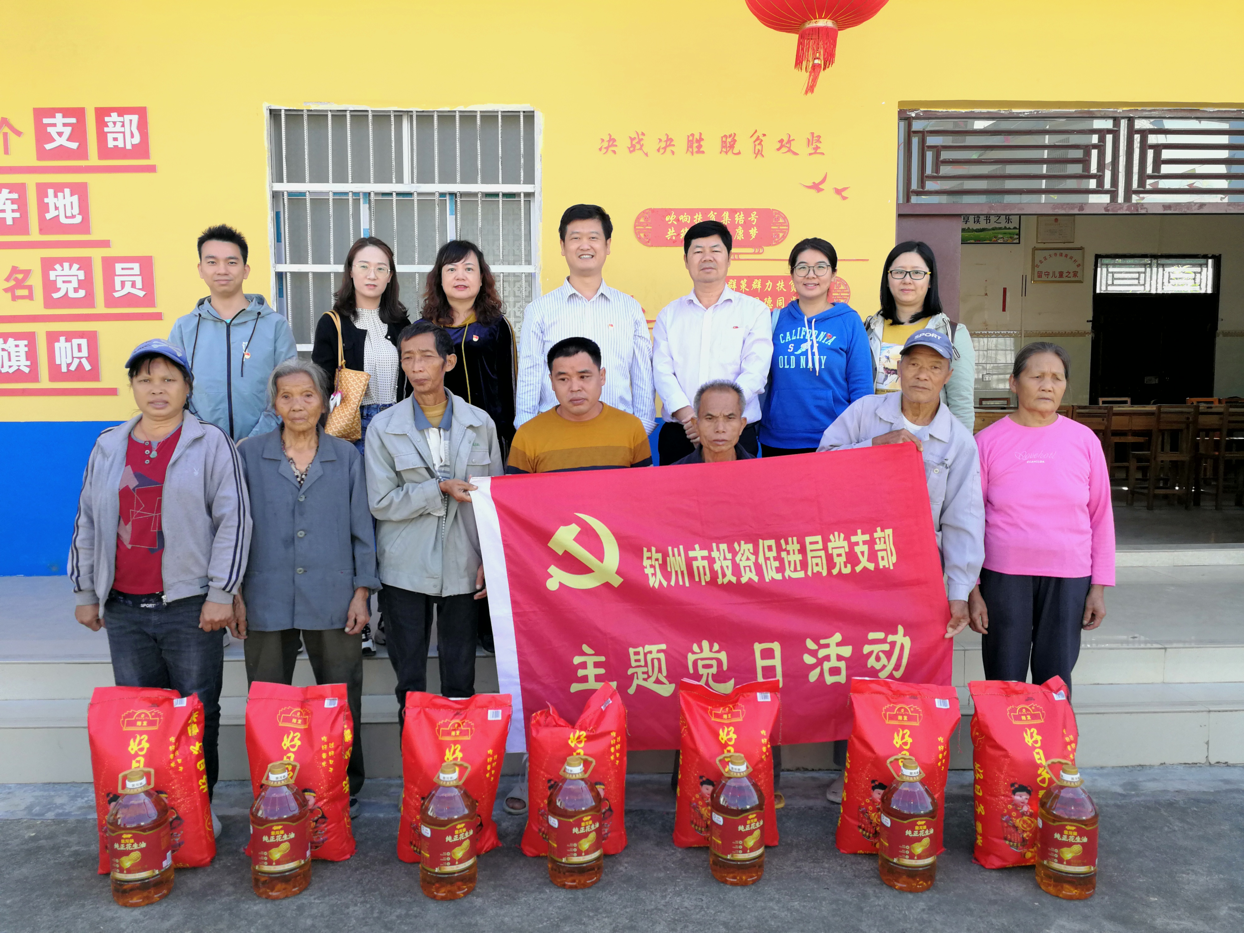 10月23日,钦州市投资促进局党支部组织支部全体在家党员,联合钦北区招商促进局党支部党员,到钦北区大寺镇南间村委那布村,开展了“民族团结促脱贫攻坚”主题党日活动。