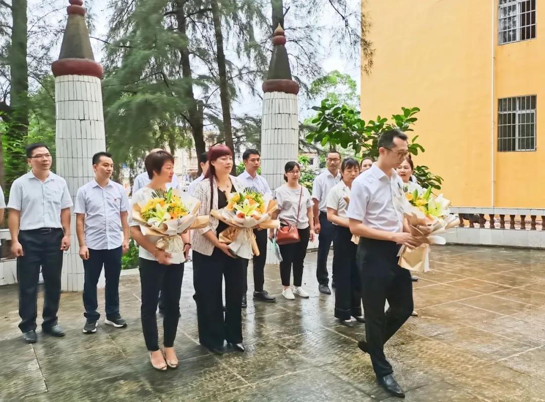 在钦北区贵台镇烈士纪念碑前,全体党员肃静默哀,深切缅怀革命先烈。市投资促进局副局长胡硕带领党员代表向烈士墓敬献鲜花,表达深深的缅怀和崇敬之情。默哀结束后,全体党员认真学习了革命先烈们为保卫新生政权战斗而英勇牺牲的感人事迹,在革命烈士纪念碑前重温了入党誓词,庄严宣誓,更加坚定了继承烈士遗志、为党的事业创新实干和奉献力量的决心。